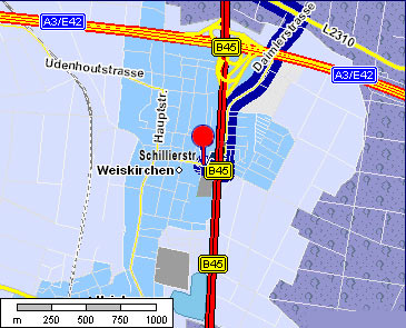 "Rodgau-Weiskirchen ist erreichbar über A3/Ausfahrt Hanau, B45 und 448, jeweils den Beschilderungen Industriegebiet Weiskirchen folgend"